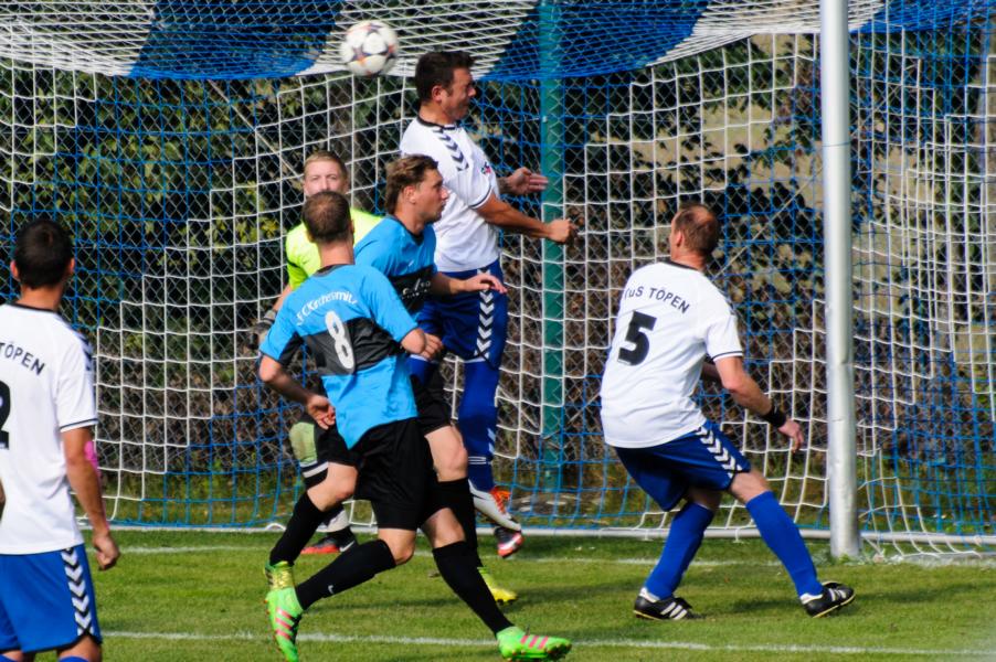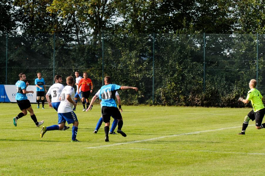 Bereits mit dem ersten Angriff der Hausherren wurden die guten Vorsätze des VFC zunichtegemacht. Nach dem Anstoß folgte ein langer Ball in Richtung Viererkette, welcher nach eine Schlafmützigkeit der VFC-Defensive von Scholz in der ersten Minute nur noch eingeschoben werden musste. Anschließend ist der VFC jedoch auf dem Platz angekommen und war die spielbestimmende Mannschaft. Die infolge des Übergewichts erspielten Möglichkeiten konnten jedoch nicht genutzt werden. In der gesamten ersten Hälfte agierte der TuS Töpen lediglich mit langen Bällen, welche unserer Defensive allerdings immerwieder Nadelstiche zusetzten.