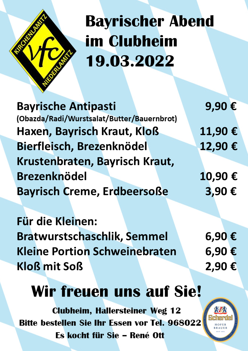 recht herzlich dürfen wir euch zum „Bayrischen Abend“ ins Clubheim einladen. Alle Details befinden sich auf dem untenstehenden Plakat.